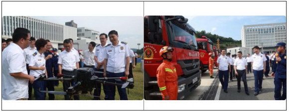 广东省应急管理厅党组书记、厅长王中丙观摩、指挥演练并发表讲话,副厅长、省消防救援总队总队长张明灿,副厅长高涌涛等领导在现场观摩演练。