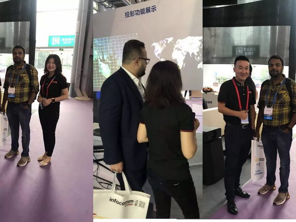 展会现场不仅有专业的技术人员带您参观讲解,您还可以自己亲身体验这些前瞻投影技术。看前瞻技术,掌握未来发展趋势!看我们国外的小哥哥们也被吸引过来啦!