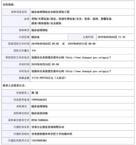 临泽县博物馆安全防范系统工程公开招标公告