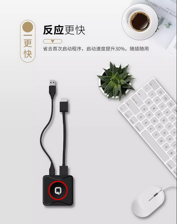 【产品描述】HDMI版投屏发送器(简称小Q),适用于Q-Share智能交互会议终端和Q-Meeting智能交互会议平板,投屏速度提升30%,让分秒必争的会议更加高效!