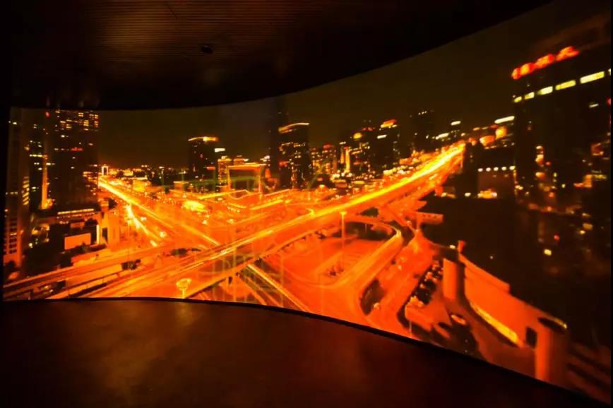 得益于NEC液晶激光出众的色彩一致性和强大的色彩校正技术,保证了超大画面色彩的极度统一。为了追求感官舒适,超大环幕的8台投影机则被隐藏安装在圆形吊顶之上,丝毫不影响展厅整体的美观。
