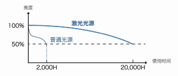 激光光源技术改变了投影产业传统的竞争版图,因其高亮度、高色彩还原、低能耗、体积小和长寿命的特点,在各个领域逐渐成为市场主流。激光光源支持7×24小时连续工作,能实现长达20000小时的超长寿命,是普通光源寿命的10倍。