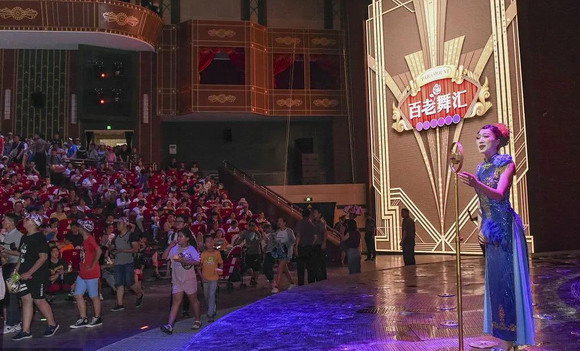 在梦外滩景区,《百老舞汇》作为诠释老上海文化的经典节目,以及横店演艺秀3.0的代表作,人气爆棚。整场节目分为石库门、码头、百乐门3个表演厅,观众从走着看、站着看,到最后的坐着看,以全过程的沉浸体验,不仅能近距离感受老上海的市井文化、黑帮文化和百乐门文化等多元文化,更能穿越历史重温老上海歌舞娱乐业的繁华与时代特色。