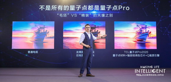 而此次发布的C8至臻QLED TV正是又一力作,搭载了量子点Pro2020技术。正如王成在发布会上着重谈到的“不是所有的量子点都是量子点Pro”。首先,量子点材料作为一种纳米级的优质发光材料,它可以显示更纯的色彩,以及提升电视的色域。其次,除了用好料之外,调教也十分重要,量子点Pro2020技术采用了魅丽珑芯片AI级的调色,同时结合TCL自研的Q画质引擎技术,在亮度、色彩、清晰度等方面做了深度的优化,所以才能最终呈现完美的画质效果。王成在现场还做了一个更形象的比喻:“这就好比同样是大房子,精心设计的精装房一定会比毛坯房更美观更舒适。”