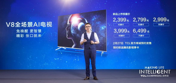 2020年2月27日,“懂你的大屏音画专家”TCL召开以“Making Life Intelligent”为主题2020春季新品线上发布会,携C8至臻QLED TV、P9好莱坞剧院电视、V8全场景AI电视三大系列13款超大屏新品精彩亮相,进一步夯实回归电视音画技术的大屏战略,助力用户回归客厅的同时,也真正重构电视产业竞争力。