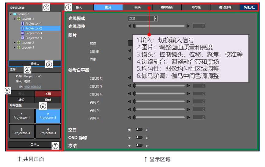 如今,工程显示领域对成像效果、调试效率的要求在不断提升,为了给工程显示带来更精准、更智能、更便捷的灵活控制体验,PX2000UL+搭载的NEC ProAssist投影辅助软件平台,坐拥数个强劲的画面校正功能,可以打造出适合多样化场景应用的解决方案,堪比图像调校中的“全能多面手”。