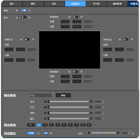 而通过智能软件平台下的内置边缘融合功能,客户则可对图像上、下、左、右全方位进行融合带调整,没有投影台数限制,非常适用于多机、大画幅画面融合。并且,PX2000UL+内置该功能可以有效节省客户第三方融合设备购置费用,让用户的综合使用成本进一步降低。