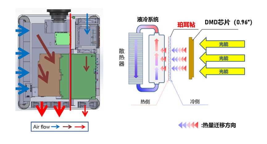 全分离式气流散热系统(左)、珀耳帖液冷散热技术(右)(示意图)