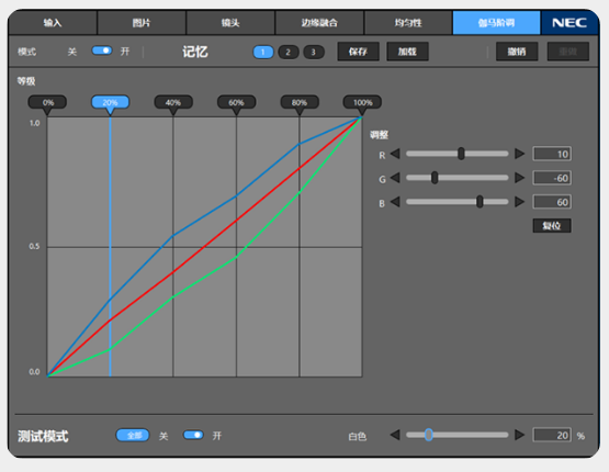 为了避免这种后顾之忧,PX2000UL+可以对多机中的某一台设备,或一台设备中的某一块区域进行色彩精确校准,快速帮客户解决问题、对症下药。而在影响一致性效果的原因不是偏色而是灰阶时,PX2000UL+同样可以调整不同层次的Gamma曲线,对RGB分色调校,从而保证画面色彩的一致性。