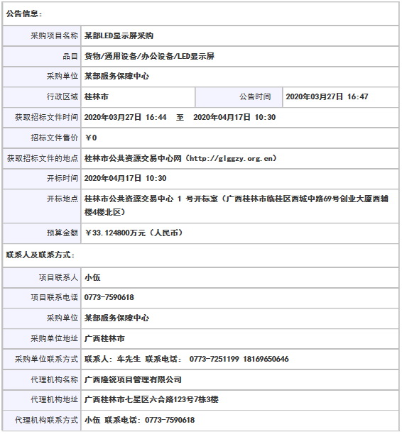 采购项目名称: 某部LED显示屏采购 采购品目: 货物/通用设备/办公设备/LED显示屏