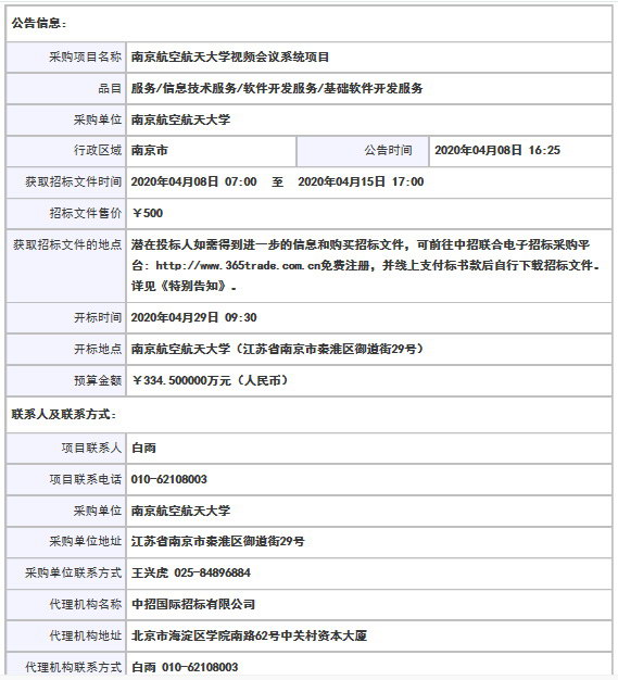 获取招标文件时间: 2020年04月08日 07:00 至 2020年04月15日 17:00