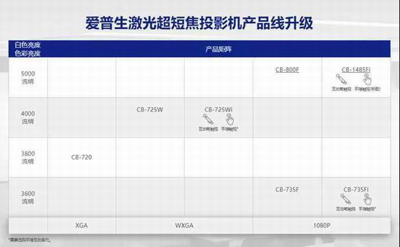 CB-735Fi系列共包含5款新品,均采用全新的激光光源,至此爱普生教育投影超短焦产品线已全线升级激光光源!