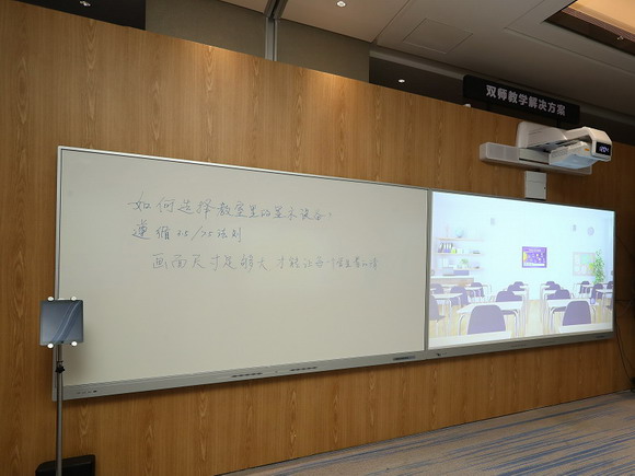 1)100英寸以上的画面让后排的学生看清楚教学内容,更适用于约50平米以上的教室