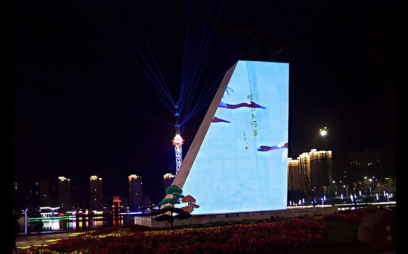 夜幕降临,华灯初上,昭阳湖公园的将军碑投影和水幕投影两大投影秀竞相上演,在夜色下以灯为笔、以光为墨、以湖为镜、以梦为影,通过声、光、电等现代技术,向市民展示光影技术带来的饕餮视觉盛宴,让市民感受梦境公园的光感体验。