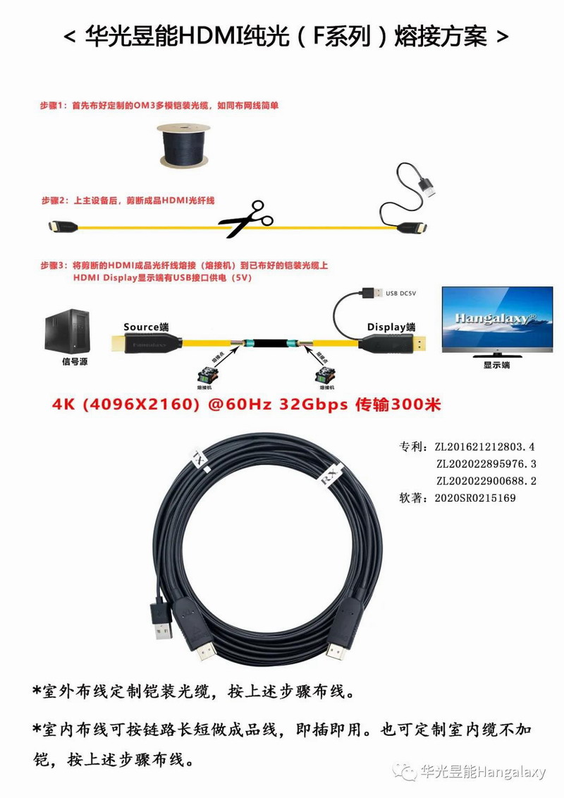 华光昱能Hangalaxy品牌的HDMI光纤线