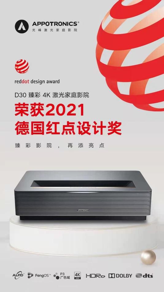 光峰科技D30激光家庭影院荣获2021德国红点设计大奖