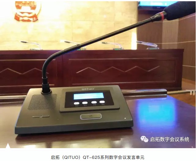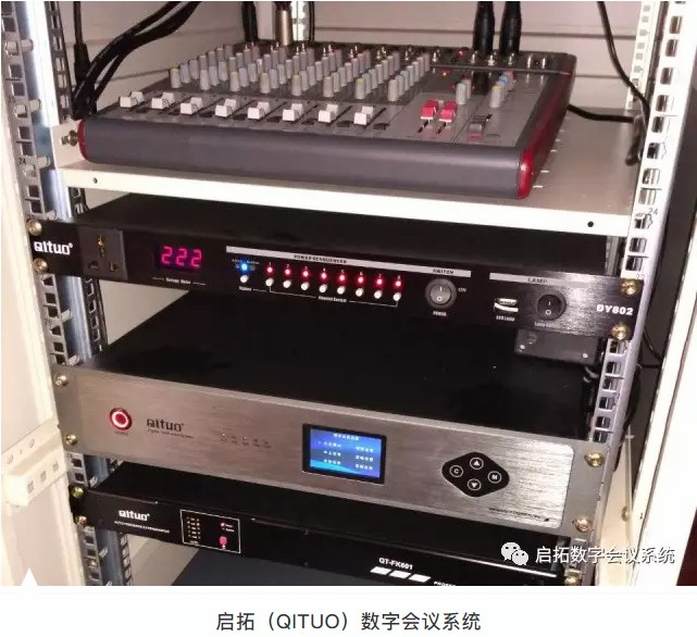 此次项目中主要用到启拓(QITUO)数字网络会议主机QT-G620M会议主机(带表决、签到、摄像跟踪等功能)一台、数字网络会议主席话筒(带5.5寸电子桌牌) QT-B625九支、数字网络会议代表话筒 QT-B625D 四十一支、启拓(QITUO)数字功率放大器QT-MS350 一台、启拓(QITUO)调音台 QL08 一台以及辅助音箱H08、无线手持话筒QT-U72M、VGA矩阵切换器 VGA0404等其它会议设备若干台(套)。