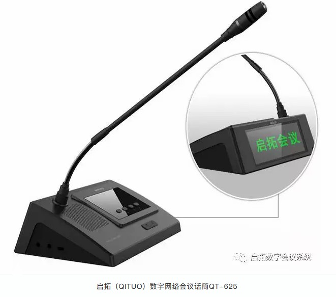 QT-625系列数字网络会议发言单元是启拓(QITUO)基于数字网络技术而最新研发的最新一代会议话筒。系统突破会议系统中采用6芯线、8芯线等连接方式,采用纯网线连接,通过一条CAT5标准网线将会议系统、调音台、会议主机、数字功放、网络交换机等设备连接,构成会议系统的互联互通,施工方便,布局简单,代表了当今会议系统的最前沿技术。