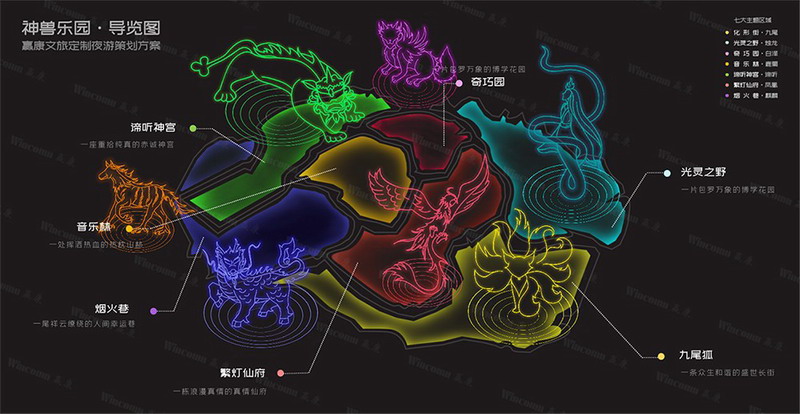 近年来,中国传统文化越来越受到人们的追捧和喜爱,上古神话故事,作为溯本追源的图腾烙印,一直为人津津乐道。赢康选择了“神兽”这一主题作为夜游品牌的主打内容,凝聚民族之魂,彰显文化自信。神兽乐园,与光同行,至国潮时代!