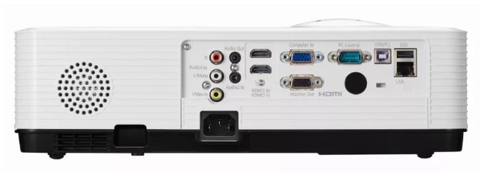 机身内置了10W功率的扬声器,当需要演示带有音频的内容时无需额外购买外放设备。另外,丰富的接口配置是该系列的另一大亮点,除了两个用于输入、输出VGA接口外,它提供了两个HDMI 1.4高清输入接口,并提供了USB直读功能,通过在机身后的USB A型接口上连接U盘、移动硬盘等存储设备,无需电脑也可以展示其中文件、表格和多媒体内容。