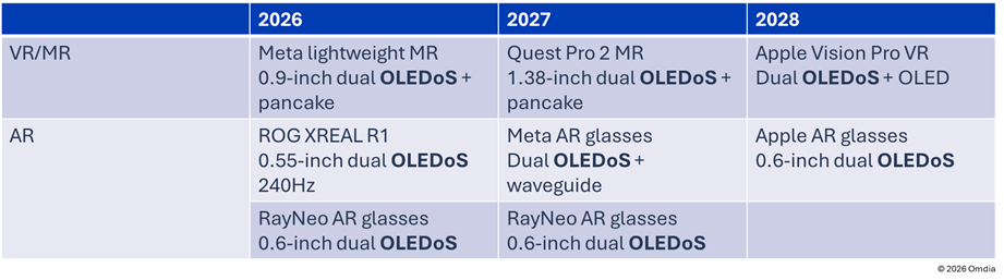 2026–2028年AR、VR和MR近眼设备新品路线图