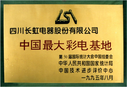 1986年8月,长虹彩电大楼落成,从日本松下公司引进的自动流水生产线建成投产。同年底,该线实际单班日产量已超过设计日产量1000台,达到1200台。1995年8月,第50届国际统计大会授予长虹“中国最大彩电基地”称号。正因为长虹,中国家庭开始普及彩电。现在,平均每三个中国家庭就有一个使用长虹电视。