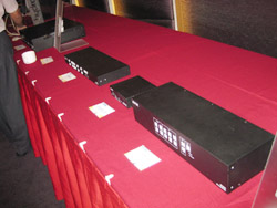 、Michael、Jason对本次会议推出的新产品的讲解。记者了解到本次展示会展出的产品有Hydraport、AVS-SL-PR-0401-0601、AVX-400-SP、CSG-580、DVX-2100-SP等等。Hydraport是本次展出的亮点,它连接AV信号,控制信号,网络信号和电源的方法很简单,是模块化的产品,完全模块化的设计,所以可以设计任何AV网络控制和电源模块的组合来达到一个完美的效果和实现一个特定的功能,比如,电脑、投影机、展台、DVD、音频设备和其它的一些设备等。此外,它还拥有如下的优点:完整的双面应用;更多方式投入ENOVA、简洁、无需电工安装、控制功能以及简化了安装等。