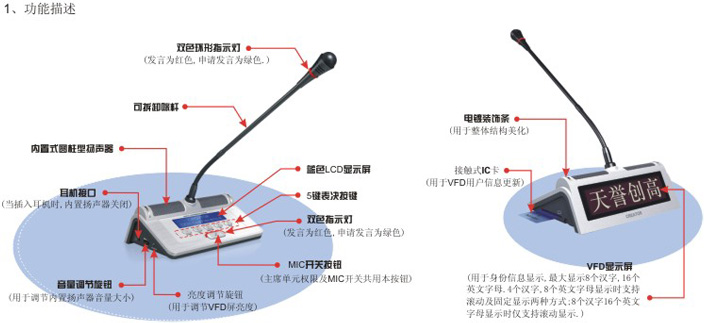 数字身份显示+发言+表决+签到功能。 |