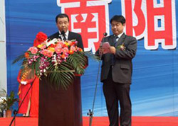 市委副书记、市长穆为民在庆典上发表讲话。他首先代表市委、市政府对南阳首控光电有限公司开业表示热烈的祝贺,向出席庆典的各位嘉宾表示热烈的欢迎。穆为民指出,南阳首控光电有限公司是市委、市政府为推动光电产业加快发展,在南阳金光数显公司的基础上,引进战略投资者首钢控股有限公司为控股股东设立的股份制企业。MD光电显示产业是一个有较高科技含量和广阔市场前景的新兴产业。近年来,我市立足光电产业具有较强的零部件加工能力的基础,依托中光学集团光学冷加工优势,组建了具有孵化器性质的南阳金光数显有限公司,做出了发展MD光电显示整机的战略决策,在两年多的时间里产出了国际一流、国内领先的产品,赢得了党和国家主要领导人的赞誉和市场的好评。引进首钢控股有限责任公司这一国家大型产业集团作为战略合作伙伴,必将为企业下一步发展奠定良好基础,为南阳光电产业发展注入新的生机与活力。穆为民表示,市委、市政府将大力支持南阳首控光电有限公司的发展,使公司尽快成长为国内光电显示行业的龙头骨干企业。