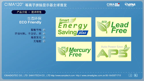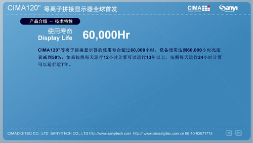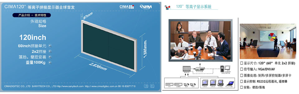 | CIMA 120”等离子拼接显示器全球首发 2010年4月8日,国内大型显示器件专业供应商北京三一友泰科技有限公司在世纪金源大饭店举办了主题为“创先突破 视领天下”的新产品发布会... [详细] 应用无限-CIMA 120”等离子拼接显示器 大屏幕拼接显示产品已有十几年发展历史,在大屏幕行业人士共同努力下,拼接显示无论在技术方面还是在应用需求方面都得到了迅猛的发展... [详细] 详解CIMA 120”等离子拼接显示器 大屏幕商用行业的不断发展,促使拼接显示技术也得到了多元化进步,尤其是等离子、液晶拼接技术发展的不断进步,很大程度上满足了消费者的... [详细] |