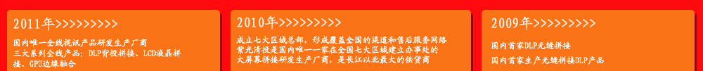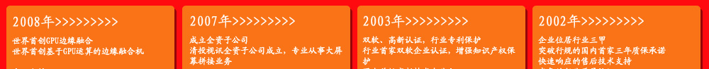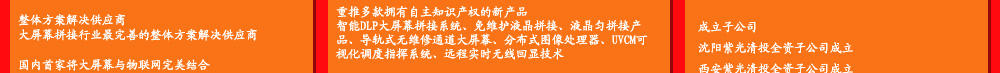 清投视讯一直以客户需求为导向,以原创性的技术研发为企业核心竞争力,自主研发出TNet物联网拼接系统、DLP背投拼接、LCD液晶拼接、GPU边缘融合、视频墙控制器五大系列全线产品。并且拥有华北、华东、华中、华南、东北、西南、西北七大区域总部,形成了覆盖全国的渠道和售后服务网络,竭诚为政府、交通、军警、能源等行业客户提供技术最先进、最完善的大屏幕拼接整体解决方案。