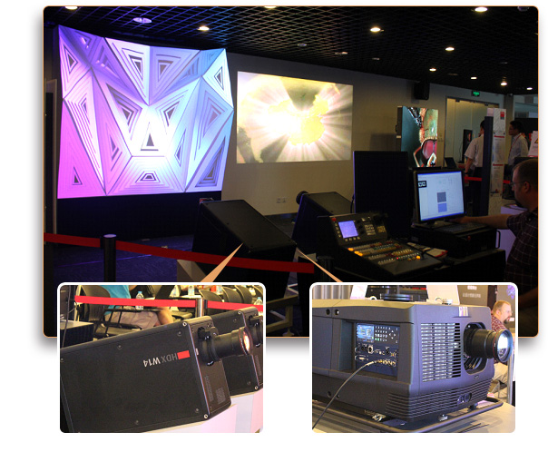 从2013巴可创新周了解到,此次活动的重头戏是现场展示巴可在2013欧歌赛的舞台创新应用,引发了与会者关注。“作为欧歌赛独家技术支持商,巴可从舞美光路设计(SIMCAD)、视频控制管理、现场实施等全程参与,为欧歌赛提供了完整的一站式系统解决方案,” 巴可大中华区产品市场部副总监薛峰继续讲道:“值的一提的是,晚会现场未使用一块LED显示屏,主舞台背景仅用了13台巴可40,000流明投影机做竖型融合变形,创新的舞台效果更是震撼全场,为舞美舞台设计带来了更多选择。” |