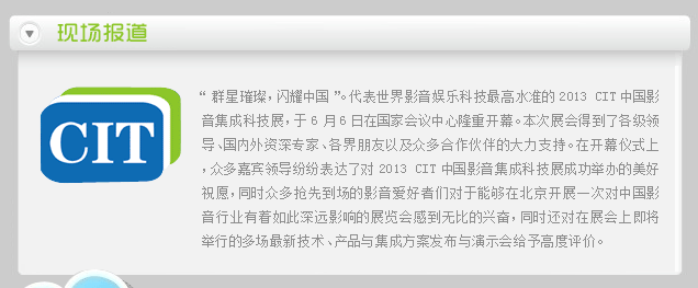作为国内唯一的以顶级家庭影音、全宅电子集成、定制安装与智能解决方案为主的大型展会,第三届中国影音集成科技展CIT2013已经于6月6-8日在北京国家会议中心隆重举行。作为我国北方地区每年一度的音响界与定制安装行业的盛事,CIT2013展会受到了多方关注,在顶级私人影院与定制安装逐步成为影音行业发展潮流的今天,CIT2013汇聚了众多国内与国际顶级影音娱乐、智能控制...... |