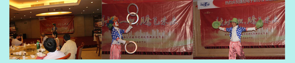 发布会结束后,捷控电子邀请广大的与会嘉宾在广州新珠江大酒店宴会餐厅举行盛大的晚宴。除了品尝精美的食物,还有滑稽的小丑带来的精彩表演,让大家在享受美食的同时也能感受到快乐。 |