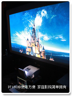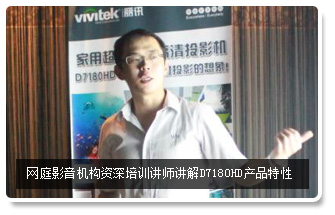 同时,网庭影音机构资深培训讲师也结合产品演示为大家介绍了Vivitek丽讯D7180HD的产品特点。他表示,D7180HD作为全球首款家用全高清蓝光超短焦投影机也是Vivitek丽讯另一款重量级家用产品。D7180HD拥有绝佳的投射比,超短焦的特性可以在34公分的距离投射出87英寸的全高清超大画面,而且占地面积小,无需吊装,组建方便,绝对是为空间有限的家庭用户量身定做。而且D7180HD拥有3400流明的亮度和2500:1的对比度可以投射出全高清分辨率画面,效果卓越。