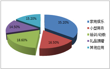 目前,微型投影机更多地定位于:家庭大屏幕影视、移动商务等领域,但产品的易用性还不是特别好,用户主要集中在30---50岁的中年男性用户。我们认为产品的形态需要进一步向易用性的方面去做深度发展,并拓展更年轻的用户以及女性用户。