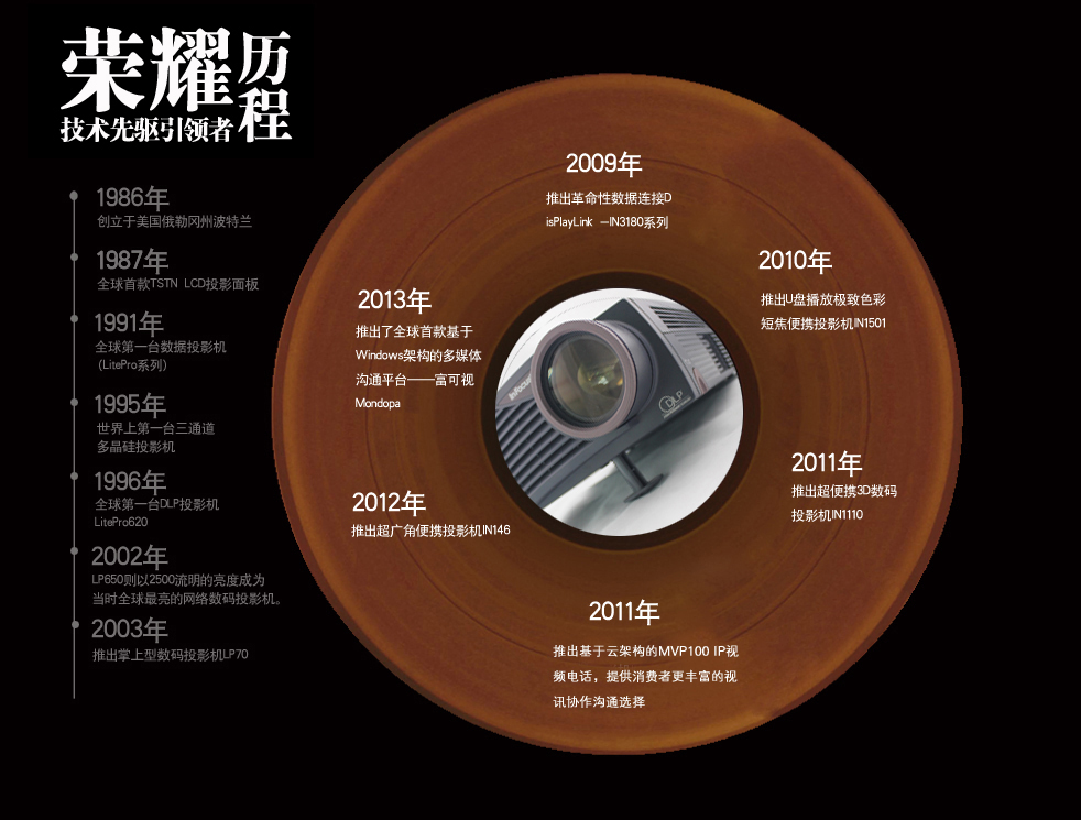 导语: 1986年,在美国俄勒冈州波特兰富可视诞生,三年沉淀,推出全球首款TSTN LCD投影面板,一鸣惊人,在业内为人所知,在随后的二十多年,富可视延续着一个传奇的科研创新速度---每一年都会推出一款全球首创产品,从未间断,这种敢为人先的创想与科研实力亦成就了如今富可视在海内外的声名。