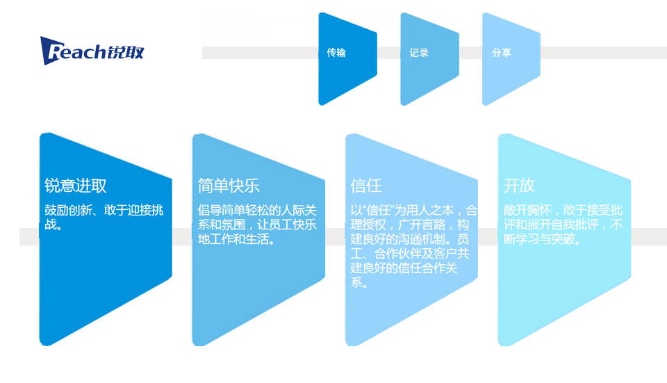 作为业内领先的多媒体录播产品和技术服务的提供商,锐取从“可视化信息的记录与传播”,到“多媒体信息的传播、记录与分享”,锐取这定位的转变,主要是出于顺应行业发展的趋势,理清锐取发展战略。锐取的核心竞争力,从来不是产品,也不是勤奋,而是整个团队。团队创新、敢于迎接挑战,推动着整个企业不断向前发展!
