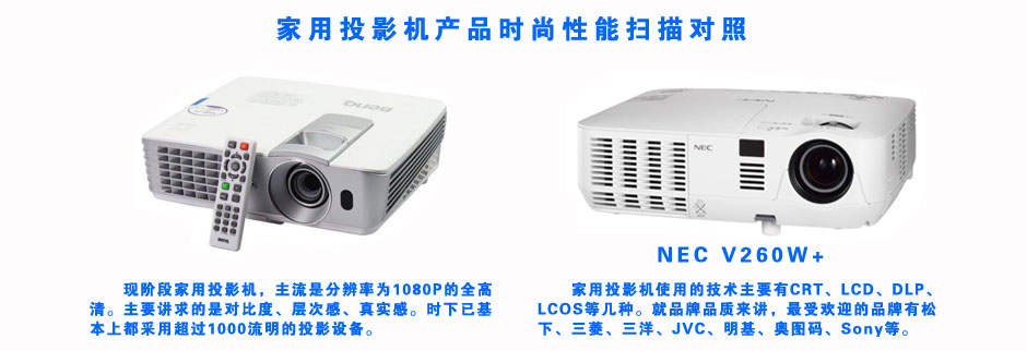 | 编者语: ◆ 在中国壮族之乡,有悠扬婉转的山歌: 唱山歌来,这边唱来那边和;以此歌词来形容眼下的品牌家用投影机,也似乎大有异曲同工之妙…… 欲知更多,敬请接着品读“家用投影机掀起热潮,品牌好戏轮番上阵”;◆ 目前家用电视屏幕已经进入大屏时代,55寸已经成了基础线,55寸之上的电视似乎成为许多家庭的首选……; ◆ 4倍1080P巅峰画质,4K+3D玄妙融合,身心都会为之震撼!4K显示技术匹配3D立体技术,无需解释就已经魅力四射。大屏幕与音效,已然将家庭影院效果带入到出神入化的殿堂…… 欲了详情,敬请参阅“4K+3D家用投影,将家庭影院效果带到出神入化的殿堂”; ◆ 通过观察可知,采用LED灯光源的,灯泡的寿命就高得多,高达30000小时,但流明就较低,为1000流明;而采用超高压汞灯光源的,灯泡寿命在正常模式的3500小时…… 欲了详情,敬请参阅“家用投影机产品时尚性能扫描对照”。 |