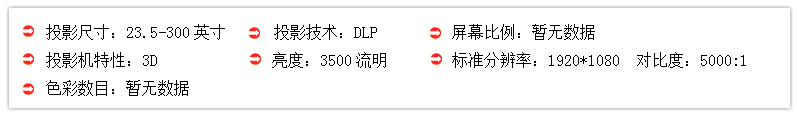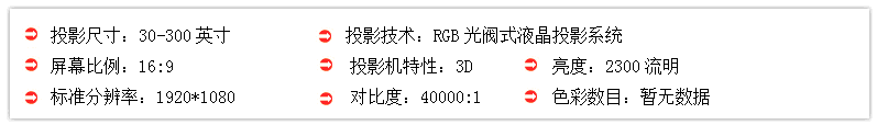 爱普生EH-TW6510C标准分辨率为1920×1080,投影对比度高达40000:1,内置双10W 立体扬声器,无需外接扬声器,便可轻松享受音视频的震撼。同时省去了接线的麻烦,安装更加方便,外观整洁干净。而且还带2D转3D功能。其还有超级解像度技术,对于低解像度和模糊的图像也能生成清晰锐利的影像。