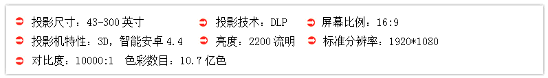 从产品的外型上来说,它就像是一个超大的iPod底座,机身前面板拥有硕大的金属网状扬声器,也没有传统投影仪的大型镜头,因为镜头实际上隐藏在机身顶部,画面向上投射,所以可以形成短距投射效果,在250px到1100px距离即可投放50到100英寸的大画面,无论是客厅还是卧室都能够很好的摆放,而且非常简洁。产品采用了LED光源,灯泡寿命为3万小时,拥有700流明的亮度,对比度高达100000:1,能够为用户呈现更高高清完美的画质。在接口方面,飞利浦智能LED超短距投影影院HDP1590接口配置十分全面,内置了3个HDMI、VGA、AV端口、同时还拥有数字光纤音频、以太网及3个USB接口,SD卡插槽,3.5mm耳机接口,机身还内置蓝牙功能,可以直接从智能手机中播放音乐、视频。另外,该机还内置了Android4.2操作系统,可以直接运行各种应用甚至是游戏,十分方便。