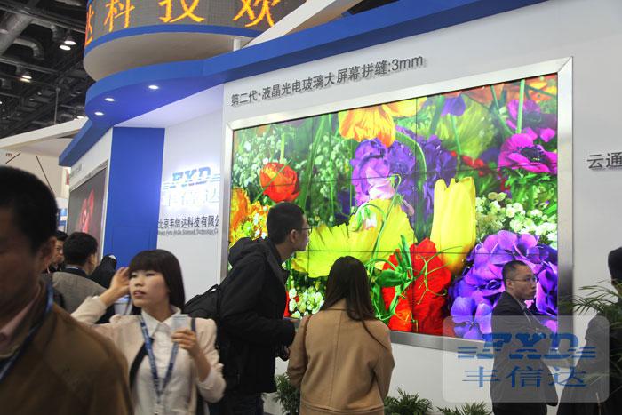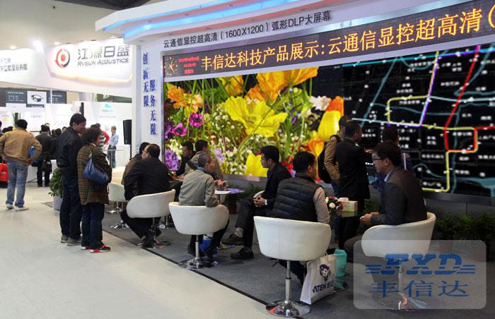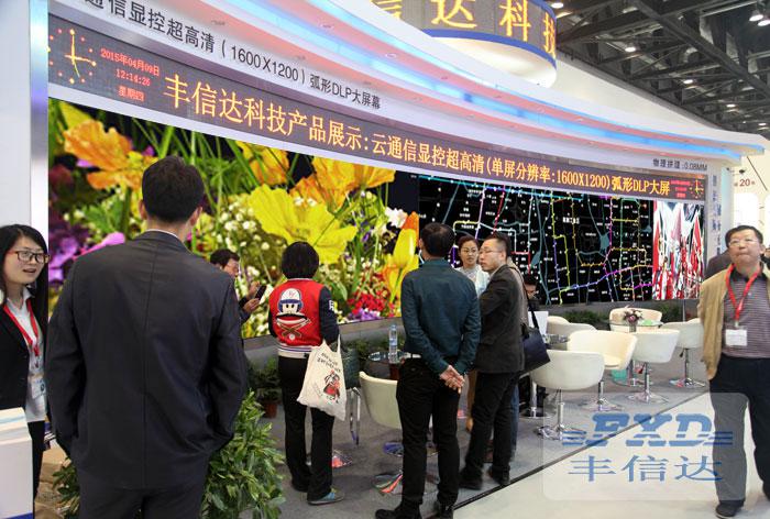 本次展出的DLP大屏幕由20个丰信达自主研发生产的LPD900型激光超高清显示单元组成,该屏幕呈2行10列8°弧形拼接,整屏物理分辨率高达16000×2400,单屏亮度高达2500流明,对比度2500:1,该屏幕采用丰信达的独家粘屏技术,大屏幕的物理拼缝做到了行业的极致0.08mm,搭载了丰信达云通信显控管理平台,显示效果出众,本次展出的DLP大屏幕别出心裁的设计,展会现场完全模拟高档监控指挥中心的设计风格,带给用户最直观的视觉体验。 |
