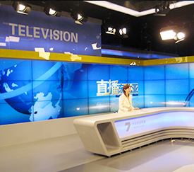 同辉佳视为大连电视台量身定制的LCD超窄边拼接视频墙投入使用,绚丽的色彩,清晰的画面,极大的增强了节目录制和直播效果,成为演播室一道靓丽的风景。