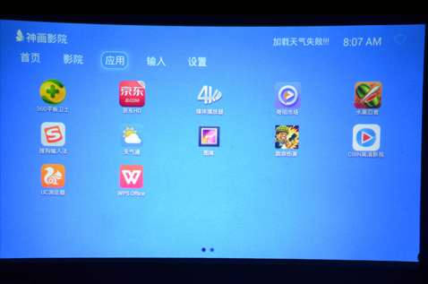 神画Z1智能影院是一款号称全球最小的高清高亮智能影院,机身仅仅苹果6plus的大小,俗话说的好,浓缩就是精华,如此小巧的外观下,它的性能却强悍无比,基于Android 4.4深度定制的PIQS UI,这也是智能投影摆脱电脑附属的重要转变的基础,成为真正的智能终端设备。