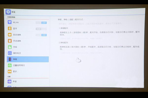 神笔的设计依然是那么简洁,和其它产品的遥控器不同的是,神笔不单单是一个遥控器这么简单,它还具备着虚拟触控、飞鼠和体感操控的功能。除了投影的正常操作外,它还可以玩游戏、演示工作文档、查看图片,放大缩小一切都是那么简单。特别是虚拟触控技术更是神画申请了专利的,正所谓是,一笔在手,天下我有!