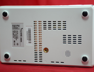 在神画Z1主机的底部,我们可以看到精心设计的大面积散热窗口,通过散热窗口依稀能够看到主机内部的金属散热片,底部的孔洞较多,除了一小片圆形孔洞是喇叭的出音口外,其余长条的孔都是散热出口。