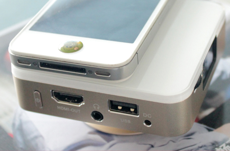 | 商业日渐繁荣而街道也日渐拥堵,工作之余的周末出门则人头攒动,比肩接踵的现状实在令人难以忍受,“宅”文化也逐渐盛兴。若是窝在家,邀两三好友畅聊、娱乐既可避免高温日晒,也可远离拥堵的交通和满街的汽车尾气,过上“一杯红酒配电影”的生活。红酒倒是可以随处可得,但是畅享电影却不是一台小小的电视就可以满足的,况且老友相聚,自然也少不了天南地北、四海遨游的照片,但是如何能够让分享脱离手机传看,成为共享简单便捷而不冷落每一个人?近日送测的由北京声物信息科技有限公司推出的一款便携云投影可称家庭日常娱乐的最佳配角。 | ![]() |