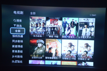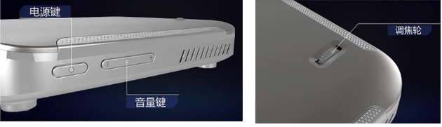 开机进入主界面,开始调节焦距,但是调焦轮用指肚调节起来比较费力,因为是塑料材质,另一个最主要的,调焦轮镶嵌太深入机身,用指肚很难准确的调节好焦距,没有指甲的消费者估计就会像小编这样反复几次才能调好焦距,享受清晰大屏,调节好就看到主界面上电视剧、电影,少儿等模块,UI简洁易懂,色彩唯美喜人,分类具体,更可供全家人使用。 | ![]() |