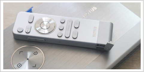 慧投B5设计的全新智能遥控器,摒弃传统的红外遥控,采用2.4G无线技术,能从投影机各个方位进行遥控,真正实现全方位无死角遥控,遥控器按键设计非常精简,担忧不失实用性和欣赏性。在遥控器的最上方,是开机键,按一下开机,轻按两下是关机,下面紧挨着的是特色功能键一键开关机和激光笔,再下面是圆形盘,分为内圈和外圈,与慧投B5机身的圆形键盘保持一致,尽显智慧。外圈是上下左右方向,内圈是确认键,在进行PPT演示时,确认键可以进行向下翻页的作用。接下来是鼠标组合键,L表示飞鼠的左键,在同屏功能时是切换安卓和苹果系统的,中间是带有鼠标小图标的是飞鼠键,是启动和锁定飞鼠功能的主键,R是飞鼠的右键,返回或者退出某一界面可轻按R键。飞鼠下面就是调焦键,左侧有“-”,表示后退,右侧有“+”,表示前进,可以长按快速前进和后退,也可以点按,精确调焦。最后一排是信号源键,轻按就可进行连接电视盒子、手机同屏操作。右边是菜单,可以进行电脑声音、画面和定时开关机等各种设置。在左侧面是音量调节键,右侧是静音键和话筒键。 |
