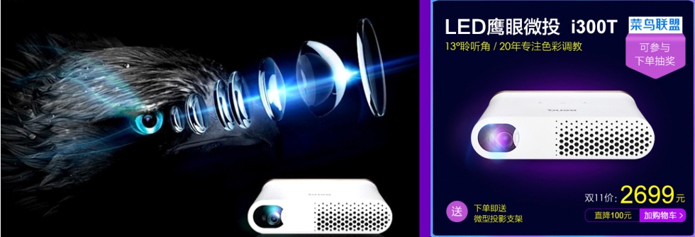| 每年的双十一,都是各大品牌提高曝光量、增加产品销量的好时机,众商家纷纷投入到促销中以抢占优势地位。新兴的智能投影行业也如此,行业大佬们为用户奉上各种大力度优惠,确保大家可以在双十一尽情尽兴地购物,各位喜欢智能投影的朋友们千万不要错过了! | |